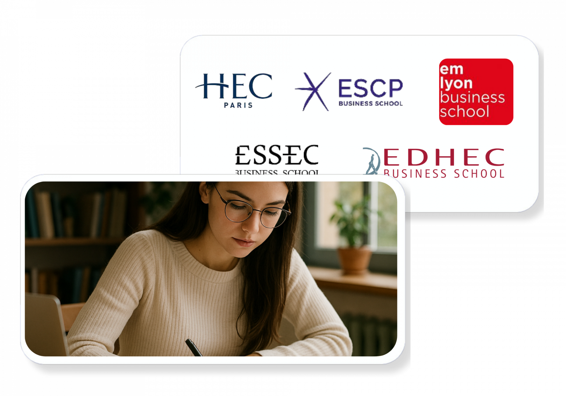 Coaching personnalisé par des anciens du Top 3 : adoptez les méthodes de travail les plus efficaces et apprenez à gérer votre prépa comme les meilleurs avec un suivi sur-mesure.