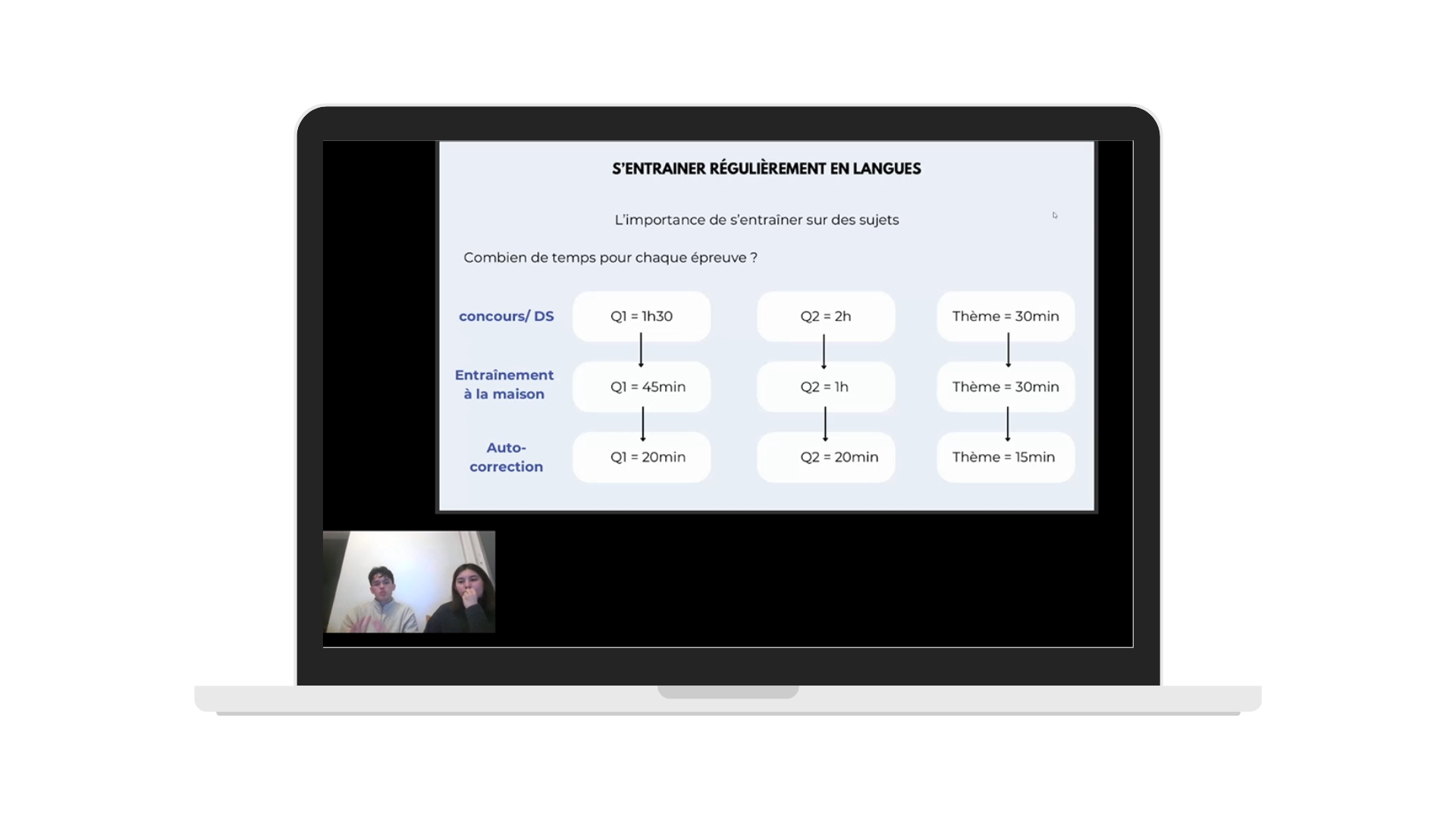 Chaque semaine, des sessions d’entraînement en visio : 4 fois plus de pratique que la moyenne des étudiants.
